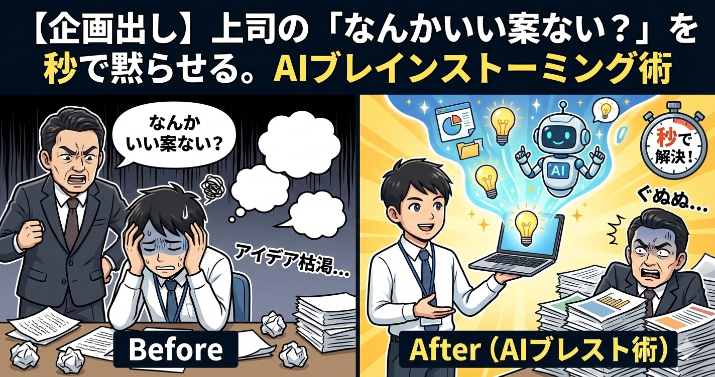 ここまで準備されていれば、さすがの上司も「おお、仕事早いな!」と認めざるを得ないはずです。さあ、AIという最強の壁打ち相手と、ブレストを始めましょう!