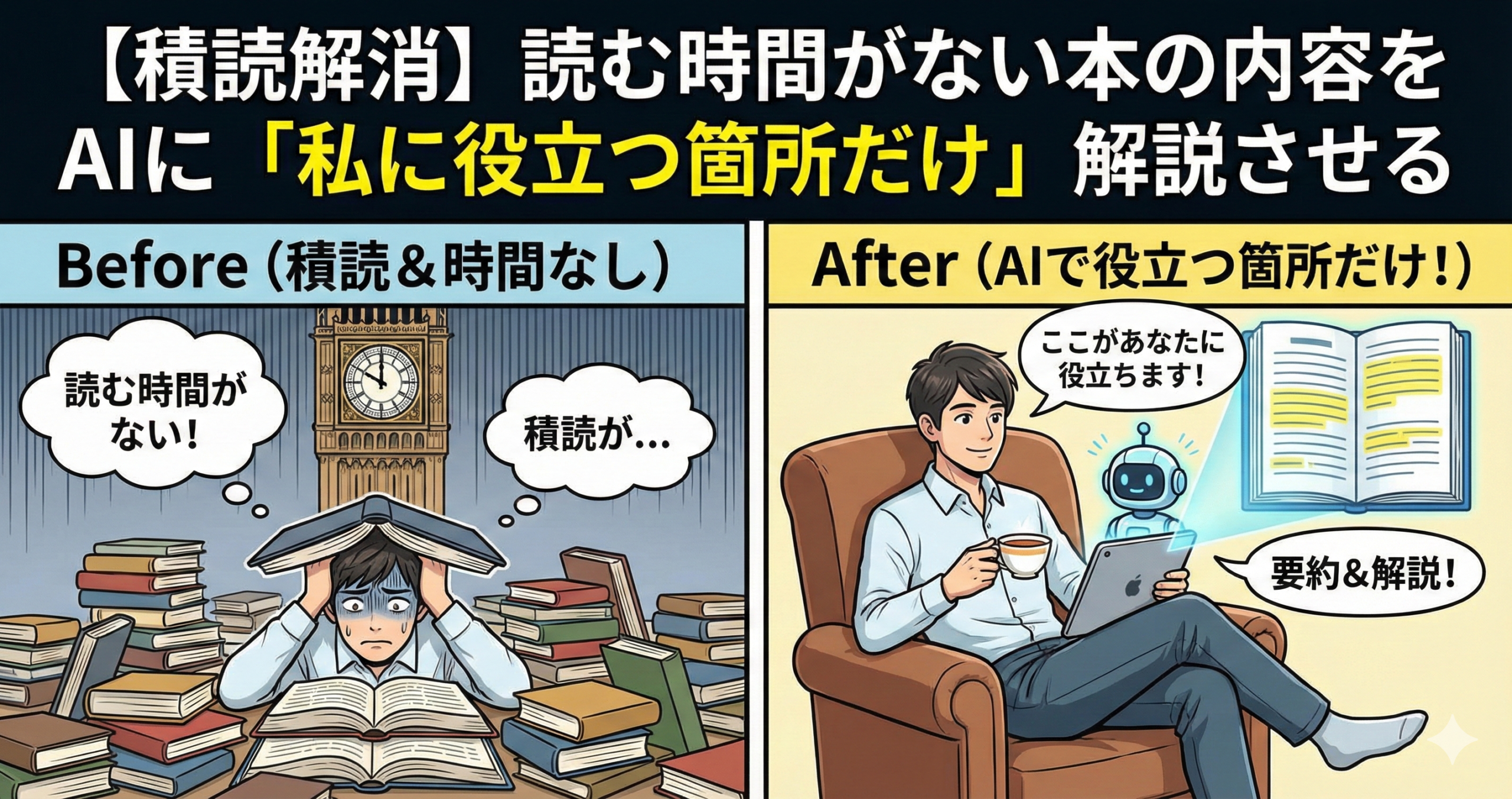 今回は、積読タワーを「宝の山」に変える、AIを活用した「自分に必要な箇所だけをつまみ食いする読書術」をご紹介します。